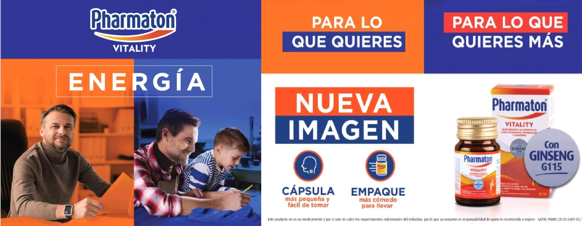 Pharmaton Vitality contiene una combinación equilibrada de Ginseng G115 ,vitaminas y minerales. "Energía para lo que quieres-Energía para lo que quieres más"